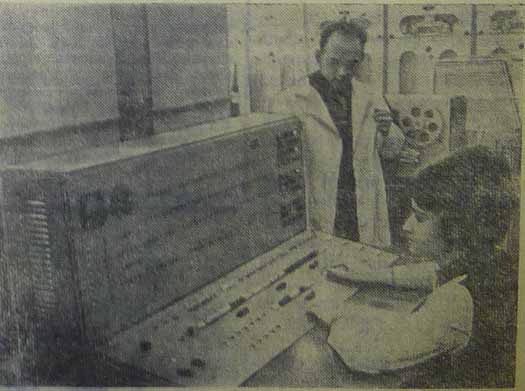 НА СНИМКЕ: сотрудники отдела вычислительной техники Владимир Овчинников и Лариса Кадырова на электронно-вычислительной машине «Минск-22» рассчитывают, как выгоднее разместить склады минеральных удобрений в Рязанской области.